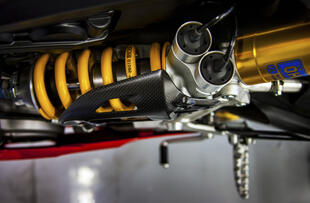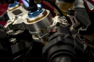 Le sospensioni Öhlins sono a controllo elettronico: il pilota puà selezionare le regolazioni in compressione ed estensione