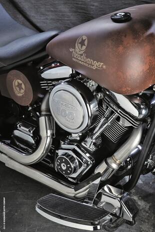 Le Headbanger sono sul mercato solo da un paio d'anni, ma in questo lasso di tempo sono cambiate parecchio. L'aspetto è rimasto lo stesso per tutti i modelli, anche se è difficile parlare di "modelli" per un marchio che fa della personalizzazione il proprio biglietto da visita. Le Headbanger infatti sono tutte realizzate sulla base dello stesso telaio con retrotreno "finto-rigido" (gli ammortizzatori sono in posizione orizzontale sotto al motore), sul quale è possibile montare uno qualsiasi dei cinque motori "standard" in catalogo, forcella telescopica oppure a parallelogramma, ruote di vario diametro e sezione , scarichi 2 in 2 oppure 2 in 1, nonché manubri di varia foggia, altezza e larghezza. E tutto, ma proprio tutto è omologato: la moto si può richiedere come si vuole, ma si può anche cambiare successivamente tutto, dalle ruote al motore. Questo rende tutto sommato accettabile, anzi quasi attraente il prezzo di listino (da considerare comunque indicativo, viste le numerose opzioni). Il nome e l'aspetto "americano" non devono trarre in inganno: molti componenti arrivano da oltre Oceano, ma ce ne sono anche molti realizzati in Europa e in ogni caso le moto sono progettate e costruite a mano nella sede dell'azienda a Rovato (Brescia) dove siamo andati per vedere e provare una serie di nuove proposte nate "rimescolando" motori e assetti, tra cui la Foxy Lady Bobber che vedete nelle foto.