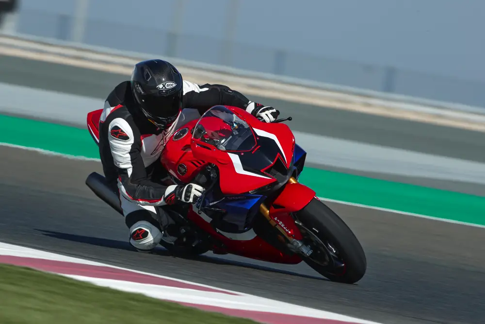 La posizione in sella è da vera superbike: la nuova carenatura e il cupolino proteggono efficacemente il pilota quando si inserisce “in carena”, ma le pedane somno montate alte e costringono i più alti a stare un po' rannicchiati. La pista di Losail dove si è svolto il test, veloce e con curve da raccordare, ci ha permesso di apprezzare a fondo le soluzioni aerodinamiche della Fireblade. Quanto al motore quattro cilindri, ha una rapportatura del cambio piuttosto lunga, ma per farlo rendere al meglio va fatto girare ad alti regimi dove spinge davvero forte.