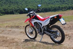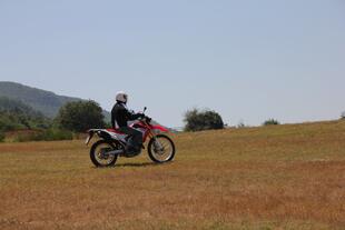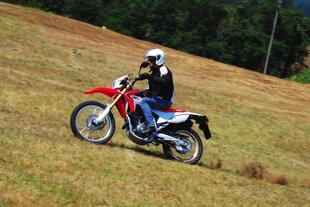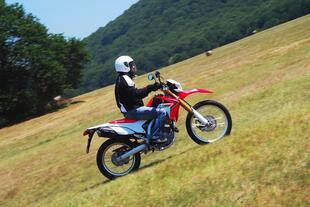 La CRF 250 L è un’endurina adatta a chi cerca un prodotto con bassi costi di gestione e poco impegnativo. Perfetta come prima moto, rappresenta anche una valida alternativa agli scooter in città. Nei fine settimana invece può diventare una valida compagna per gite con qualche puntata su strade bianche e sterrati poco impegnativi. Il motore è un monocilindrico di 250 cm3 a 4 valvole con raffreddamento a liquido, inserito in un telaio perimetrale in tubi d’acciaio a sezione ovale. Le sospensioni di discreta qualità non sono regolabili, mentre le gomme tassellate hanno un profilo “rotondo” per offrire una buona tenuta anche su asfalto. La CRF è costruita come si deve, con particolari curati e plastiche robuste e ben assemblate tra loro. Unica nota “stonata”, il tappo del serbatoio cromato. Il prezzo ridotto invece è una nota molto positiva, specie considerata la qualità.