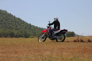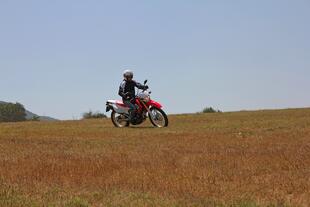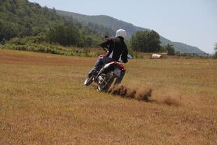 La posizione di guida è da fuoristrada, con la seduta vicina al manubrio che agevola anche la guida “in piedi” (d’obbligo quando si mettono le ruote fuori dall’asfalto). Il motore è brillante, ma non cattivo, l’erogazione della potenza è fluida e regolare. Per fargli tirare fuori il meglio bisogna tenerlo sempre su di giri, usando molto il cambio che per fortuna è ben a punto, come anche la frizione. I freni hanno buon mordente, adeguato al peso della moto e alle gomme tassellate che su asfalto bagnato richiedono qualche attenzione in più. Bene le sospensioni tarate sul “morbido”, assorbono senza problemi le buche e digeriscono la guida in fuoristrada. Su strada però la forcella affonda un po’ troppo nelle frenate più decise.