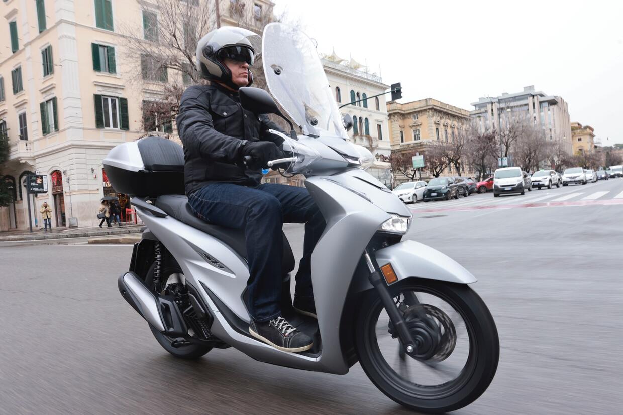 Il motore ha un'erogazione progressiva, al semaforo sfodera uno scatto brillante e non trasmette vibrazioni. Anche il sistema Start&Stop (disinseribile) è ben a punto. Nel traffico l'SH è rapido e sempre stabile, tra le auto in coda si muove con disinvoltura, le sospensioni sopportano le strade rovinate e il pavè, solo sulle buche più profonde l'SH paga l'escursione ridotta degli ammortizzatori (80 mm) che sono un po' rigidi nella risposta. Sotto la pioggia abbiamo potuto apprezzare sia l'impianto frenante, potente il giusto, mai aggressivo e servito da un ABS davvero a punto, che il controllo di trazione poco invasivo.