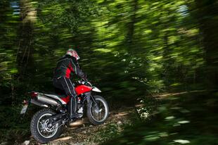 Una volta in sella (l'altezza da terra è di ben 88 cm) ciò che stupisce è la facilità di guida che permette di trovarsi a proprio agio sia su strada sia sullo sterrato. Il motore va molto bene: gira dai 2.000 agli 8.000 giri in maniera fluida e regolare, vibra poco e non “strappa” sotto i 2.000 giri. Da rivedere la rapportatura del cambio che ci è sembrato un po' troppo lunga, forse dovuta alla scelta di usare cinque marce invece di sei. Ben a punto l’impianto frenante risultato potente e modulabile; noi consigliamo come sempre la versione con ABS (con questo sistema la ruota posteriore passa da 18" a 17”), anche se in questo caso costa ben 700 euro in più.
