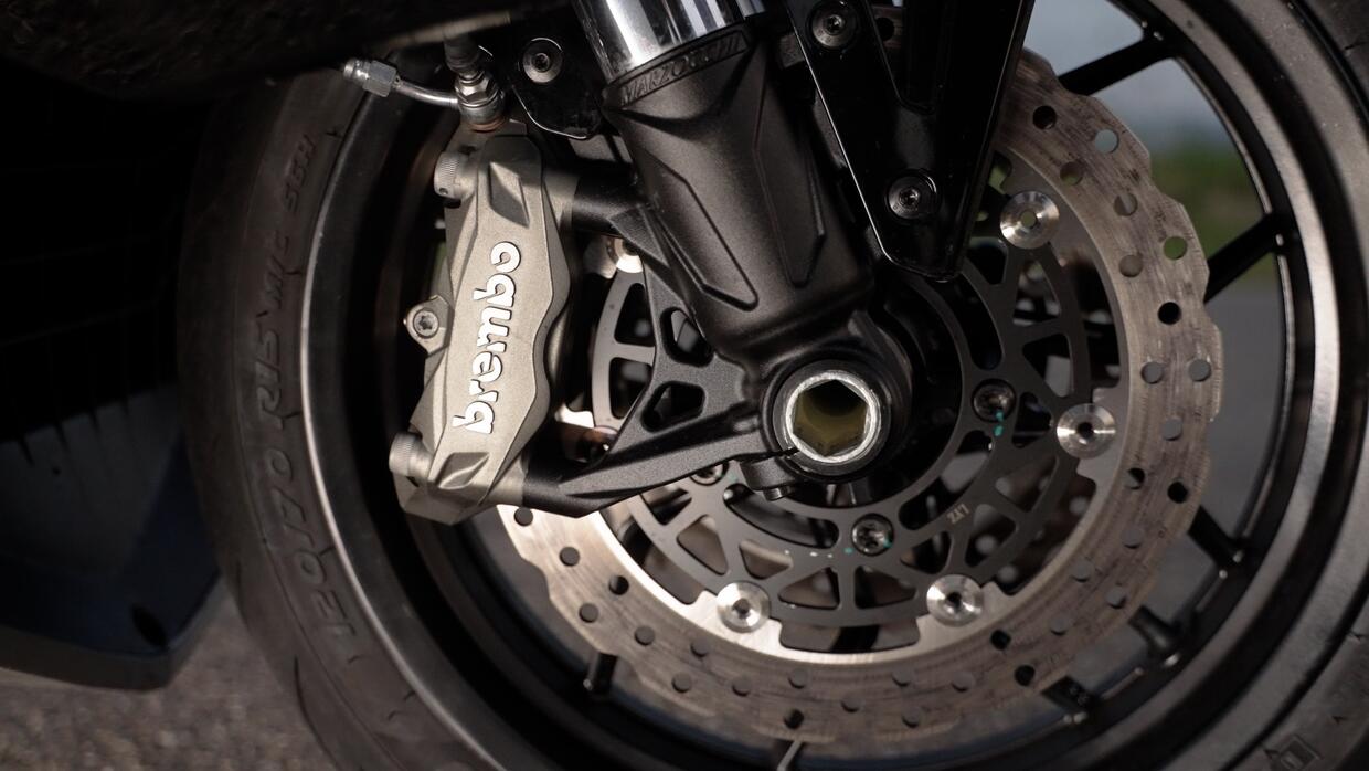 Il pacco frizione non è però l'unico elemento a vista: infatti il telaio composto da un traliccio in acciaio ed elementi in alluminio è in bella mostra. Davanti c'è una forcella a steli rovesciati regolabile e dietro il monoammortizzatore è dotato di un particolare sistema eccentrico per regolare l'altezza e variare la dinamica di guida in pochissimi secondi. Ma non è finita: l'impianto frenante è Brembo con pompa e pinze radiali, dischi anteriori da 270 mm e gomme Pirelli montate su cerchi da 15". Il cruscotto TFT a colori da 5" è condiviso con alcuni modelli QJ motor (così come il motore d'altronde) e permette di gestire il semplice pacchetto elettronico composto da controllo di trazione e dall'ABS, entrambi disinseribili.