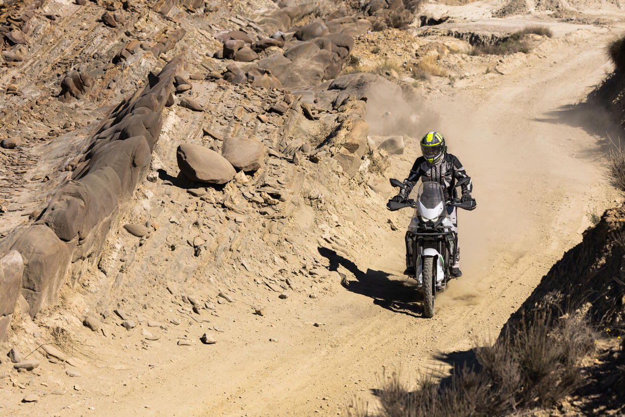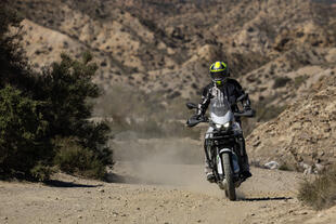 Il bicilindrico ai medi è pieno e progressivo, con una risposta al gas lineare che si sposa bene con il carattere della moto: non cerca il colpo di reni ma ofre una spinta fluida, e questo, soprattutto lontani dall'asfalto, diventa un pregio reale, perché permette anche ai meno esperti di dosare la trazione nel modo migliore. In autostrada compaiono alcune vibrazioni percepibili, ma accettabili.