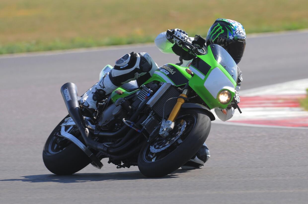 L’agilità è buona, la guida deve essere “pulita”, poco spigolosa e la ZRX deve essere lasciata “scorrere” in percorrenza di curva ma i tanti chili in meno si sentono anche se nei rapidi cambi di direzione non è un fulmine. Sul veloce la ZRX è sempre stabile grazie alle sospensioni Öhlins ben tarate e anche nelle staccate al limite (c’è anche la frizione antisaltellamento) il retrotreno non si scompone. Il cambio, originale, non perde un colpo e rimane efficace anche nell’uso senza riguardi così come l’impianto frenante, sempre “pronto” nonostante le pinze Nissin di serie ma con i comandi freno e frizione radiali. Insomma, facile, comoda, potente quanto basta e bella da togliere il fiato: una special davvero ben riuscita che, pur non contando su controllo di trazione, ABS, pinze radiali e centraline rimappate, riesce a dare soddisfazione anche in pista.