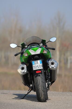 Kawasaki è sicura delle prestazioni della sua ZZR 1400, tanto da affermare che è la moto di serie più forte in accelerazione… I rilevamenti non li abbiamo ancora terminati, ma dopo averla guidata possiamo garantire che pochissime moto riescono a starle dietro quando si apre a fondo il gas. Per rendere ancora più cattiva la versione 2012 della ZZR 1400, la Kawasaki ha aumentato la cilindrata del motore (passa da 1352 a 1441 cm3) e montato un nuovo impianto di scarico. Rivisto anche il telaio, sempre un monoscocca in alluminio ma più rigido. "Ritoccato" anche il forcellone, ora più lungo di 10 mm.