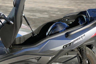 Nel vano sottosella ci sta un casco integrale e avanza ancora spazio. La sella si può sollevare su due posizioni per facilitare le operazioni di carico