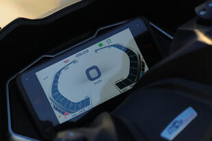 Il cruscotto TFT a colori è ricco di informazioni, si connette allo smartphone e visualizza in tempo reale anche le immagini della dashcam nello scudo