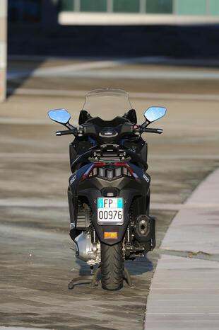 Buona la capacità di carico: nel retroscudo ci sono due vani (quello di sinistra con presa USB), mentre il sottosella ospita un casco integrale e altri oggetti. Inoltre, l’ammortizzatore che sostiene la sella ha una doppia regolazione che permette di sollevarla maggiormente facilitando le operazioni di carico.