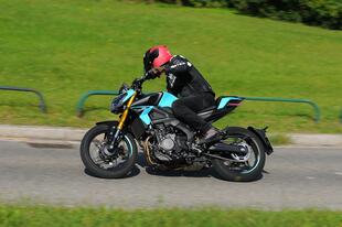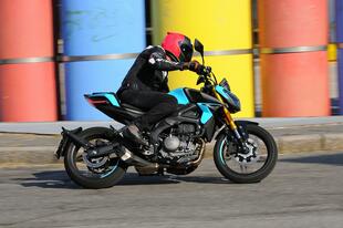 Agile e leggera, è rapidissima nello scendere in piega e veloce nei cambi di direzione, dimostrandosi una vera saetta tra le curve strette, mentre nei curvoni affrontati a velocità elevata emergono i limiti della ciclistica. Ben tarati Traction Control e ABS, non troppo invasivi e comunque disinseribili entrambi nella modalità di guida Expert. Per quanto riguarda la frenata invece avremmo preferito un pochino più di grinta dal comando anteriore, poco incisivo nella risposta anche se azionato con decisione.