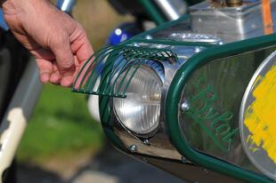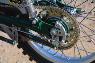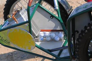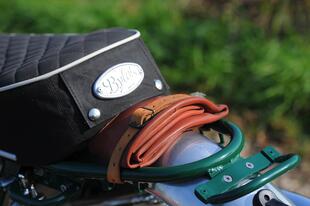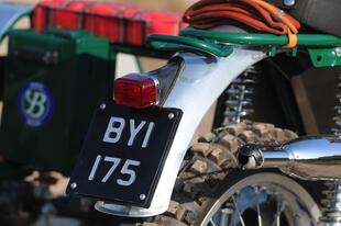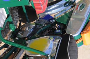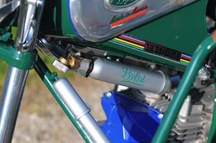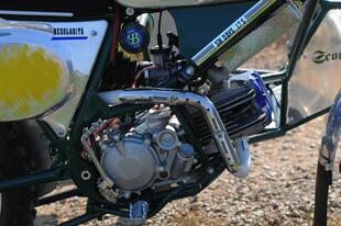 Le linee sono da moto d’epoca, ma i materiali e la cura costruttiva sono rigorosamente moderni. Anche il Tribylot, sviluppato a partire dalla Six Days 175, è spinto dal motore Daytona 190 FDX 4 V, un monocilindrico 4 tempi quattro valvole prodotto in Giappone con cilindro orizzontale, raffreddamento misto aria-olio, alimentazione a carburatore, cambio a 4 marce e avviamento rigorosamente a pedivella, con una potenza di 20 CV. Pochi? No, tutt’altro, considerando il peso di soli 104 kg del Tribylot (76 la moto e 28 il carrozzino) grazie all’abbondante impiego di alluminio (per lo più lavorato a mano) sia per la moto sia per il carrozzino che è imbullonato alla moto con quattro attacchi (due sul telaio, uno al supporto dell’ammortizzatore e uno alla pedana) e smontabile in pochi minuti. La struttura del sidecar è in tubi d’acciaio (come il telaio della moto) “chiusi” da pannelli in alluminio: per il passeggero ci sono due maniglie, una sulla moto e una frontale, rivestita in pelle come i manubri delle bici da corsa d’epoca. Il carrozzino ha una ruota da 19 pollici su cui lavora un ammortizzatore a gas laterale. Completano il “corredo” una tanica da 3 litri per il rabbocco del carburante, una pompa per gonfiare le gomme, e un paio di vani studiati per contenere i “ferri” da golf... noblesse oblige!