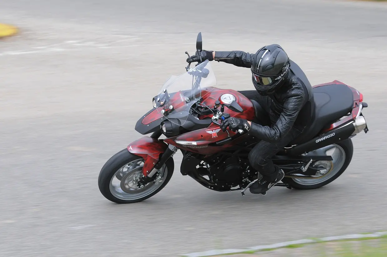 In sella alla Granpasso R il pilota si trova ben inserito in una specie di conca, con la zona delle gambe sottile e comoda da stringere. Lo spazio non manca, anche per i piloti più alti, mentre l’altezza della seduta (inferiore di 3 cm) va bene anche per chi non è un gigante. Il motore ha un’erogazione regolare e piacevole: riprende da poco più di 2.000 giri senza strappi, poi cresce vigoroso e dopo i 5.500 giri spinge fortissimo. Tra le curve la Granpasso è divertentissima: la ciclistica sana permette di andare forte a patto di essere piloti esperti, capaci di sfruttare le sue prestazioni senza contare sull’elettronica, ma solo sulla propria sensibilità ed esperienza. Emozioni di altri tempi...