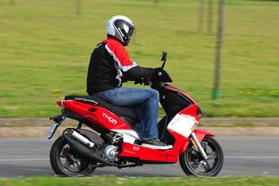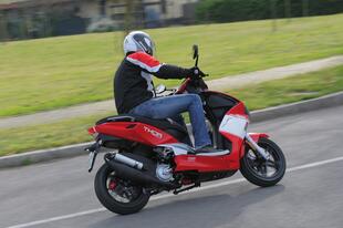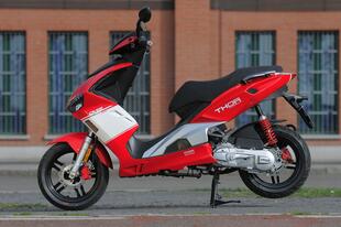 Il Thor ha un motore potente, si sente fin dalla partenza. L’erogazione è lineare, senza incertezze: la ripresa non è fulminea, ma quando prende i giri il Thor sfoggia un allungo notevole che porta lo scooter in un attimo ai 45 km/h di velocità massima. Rapido nello scendere in piega, il Thor ha sospensioni un po’ rigide che digeriscono male le buche e il pavé, ma lo rendono stabile e preciso nella guida sportiva. I freni vanno azionati con decisione, ma così facendo il posteriore tende al bloccaggio. Buona la visuale degli specchi retrovisori.