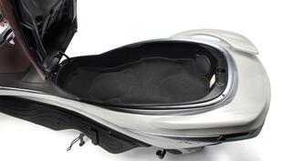 Un bagagliaio da auto - Il vano sottosella (illuminato e foderato di moquette) è spazioso e di facile accesso: la sella rimane sollevata grazie a un pistoncino. Può ospitare due caschi integrali e altri oggetti