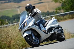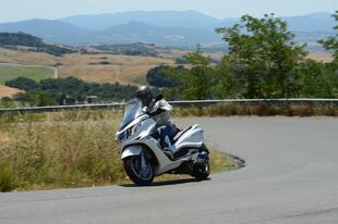 In un’annata di grandi novità nel segmento dei maxiscooter (dal nuovo Tmax all’Honda Integra e al BMW C600), il gruppo Piaggio ha presentato prima l’Aprilia SRV 850 (il più “maxi” di tutti) e poi questo X10 500 Executive. Già disponibile nelle cilindrate “piccole” 125 e 350, l’X10 ora viene proposto anche in versione 500 con il solito monocilindrico da 493 cm3 e 41 CV e un solo allestimento che ha tutto di serie: frenata combinata, ABS, sistema di antipattinamento delle ruote ASR (montato anche sul Beverly 350) e la regolazione elettronica della sospensione posteriore che si può effettuare anche in movimento. Esteticamente l’X10 è curato nelle linee e nei dettagli, con spunti presi dal mondo dell’auto come le luci a led e i comandi al manubrio retro-illuminati. Spazioso e protettivo, ha un sottosella capiente e un cruscotto completo con un display da 4”. Tanta tecnologia purtroppo influisce sul peso (ma solo in manovra) e sul prezzo che si allinea ai migliori concorrenti giapponesi.