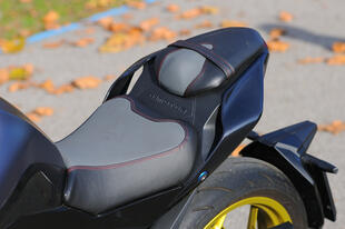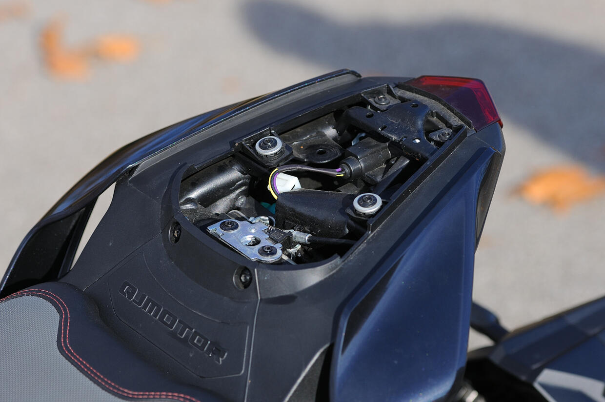 Come la maggior parte delle naked, il vano sottosella è piccolo e affollato: con un po’ di impegno però si trova spazio almeno per i documenti