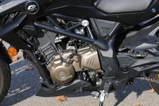 Nella gamma (pressoché infinita) della cinese QJ Motor passa quasi inosservata. Ma la SRK 400 protagonista di questo test merita invece attenzione, perché offre tanto a un prezzo “irresistibile”. Guardate il motore: è un bicilindrico parallelo di 400 cm³ raffreddato a liquido, mentre quasi tutte le concorrenti montano dei monocilindrici (decisamente più economici). Le prestazioni sono in linea con la patente A2: la potenza è 41,5 CV a 9.000 giri e la coppia massima è di 37 Nm.