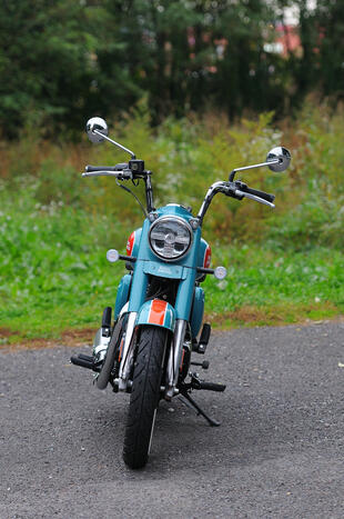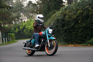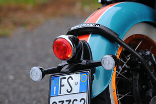 La posizione di guida della Goan è molto diversa da quella della Classic, ma altrettanto comoda. Una volta fatta l’abitudine al manubrio molto rialzato, ci si trova a proprio agio: la sella è ben sagomata, sostiene bene la schiena e non stanca neanche dopo ore in città. Le pedane avanzate regalano un buon controllo della moto, che si rivela facile e divertente anche tra le curve: certo, non è velocissima nello scendere in piega (colpa della ruota anteriore da 19) ma è rotonda, rassicurante e stabile in percorrenza. Il motore è sempre un piacere da usare: non è un fulmine (nei sorpassi e viaggiando in due si vorrebbe qualche CV in più), ma l’erogazione fluida e i consumi davvero ridotti ne fanno un ottimo campagno di passeggiate. Le sospensioni fanno il loro dovere, sono adeguate alle prestazioni, così come la frenata che richiede un po’ di forza sulla leva.