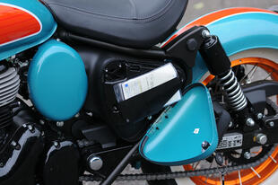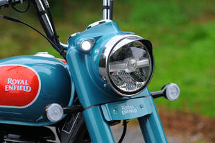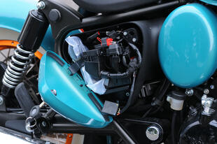 La strumentazione è quella della Classic con tachimetro a lancetta affiancato da un display LCD e dal comodo navigatore Tripper turn-by-turn. Sul manubrio c’è anche una pratica presa USB-A, mentre il faro tondo sfrutta luci a LED.