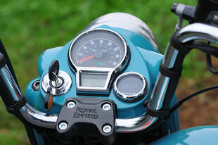 La strumentazione è quella in stile “anni 50” della Classic, con il blocchetto d’accensione sul faro. Sul lato opposto c’è il comodo navigatore Tripper di serie