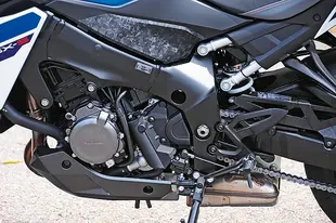 Non cambiano i numeri del 4 cilindri in linea da 999 cm³, in grado di erogare 152 CV a 11.000 giri e 106 Nm di coppia massima a 9.250 giri. Confermato anche il telaio a doppia trave, in alluminio come il forcellone. Di KYB la forcella con steli rovesciati da 43 mm, regolabile sia nel precarico sia nel freno idraulico, in compressione come in estensione. Il monoammortizzatore con leveraggi è invece regolabile nel precarico molla e nel freno idraulico. La dotazione elettronica prevede il comando del gas ride-by-wire con tre mappe motore (A, B e C), controllo di trazione disinseribile, cambio quickshift e i classici sistemi Suzuki (Easy Start e Low RPM Assist) che facilitano la vita nell’utilizzo quotidiano. Tutti i parametri sono visualizzabili sullo schermo TFT da 5”, ora a colori.