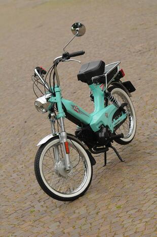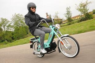 La Tomos è una storica azienda slovena che fino agli anni 80 riforniva l’intera Jugoslavia di ciclomotori. Ora l’azienda (che ha sede a Capodistria, a pochi chilometri da Trieste) arriva sul mercato italiano. La sua produzione è rimasta incentrata sui ciclomotori con motore due tempi e cambio automatico a due marce che da sempre equipaggia i suoi prodotti. Il Classic di questo test è un cinquantino economico dedicato ai nostalgici dei vecchi “motorini” anni 60: sfoggia ruote a raggi, gomme con fascia bianca e diversi particolari cromati come il portapacchi posteriore, il fanale con tachimetro incorporato e la protezione paracalore della marmitta. L’avviamento “vecchia maniera” è facile: aria tirata e scalciata sulla pedivella (dimenticatevi i problemi con la batteria...). Sono “vintage” anche i freni, entrambi a tamburo. Il Classic è disponibile esclusivamente in tinte pastello e costa solo 1.250 euro.
