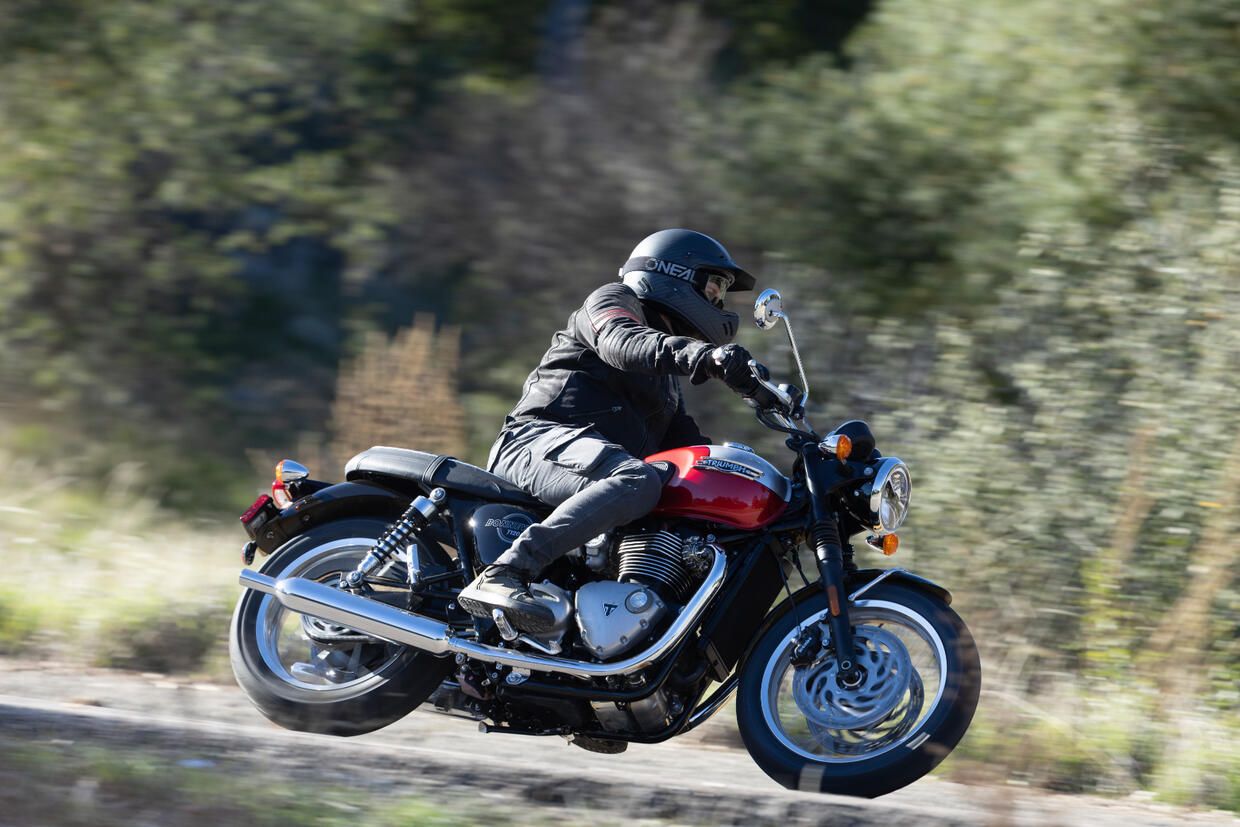 Su strada la T120 è una regina. I 233 chili spariscono grazie al baricentro bassissimo e alla distribuzione dei pesi perfetta. La frizione assistita è morbida come il burro, non stanca mai anche nel traffico cittadino dove le partenze e le soste sono continue. Ai bassi regimi, anche in sensta, la moto scorre fluida, rilassata, senza vibrazioni fastidiose che rovinano il viaggio. La coppia del 1200 è pastosa, presente ma non invadente. aprendo il gas offre una spinta che porta via senza strappare, senza esitazioni, con una linearità che invita a non guardare mai il contagiri. Non serve tirare i giri come un disperato, la Bonneville è fatta per godersela con calma, per assaporare ogni chilometro. Nel misto è rotonda, prevedibile, rassicurante. Non è fulminea nei cambi di direzione come una naked moderna (e nemmeno come la sorellina T100), ma è intuitiva e dà fiducia dal primo metro.