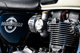 Sotto al sole i filetti dorati dipinti a mano raccontano una storia lunga sessant'anni e il logo Bonneville circolare campeggia sui pannelli laterali. La T120 è la regina non solo della gamma Bonneville, ma anche di quelle moto "a forma di moto" che fermano il tempo, nonostante un mondo che vortica di tecnologie e CV. Lei, forte di linee pulite che vengono dritte dagli anni Sessanta anche per il 2026 resta classica tra le classiche, ma nasconde tante sorprese.