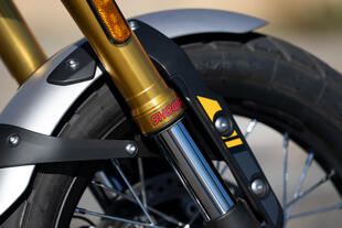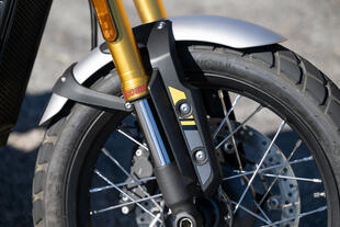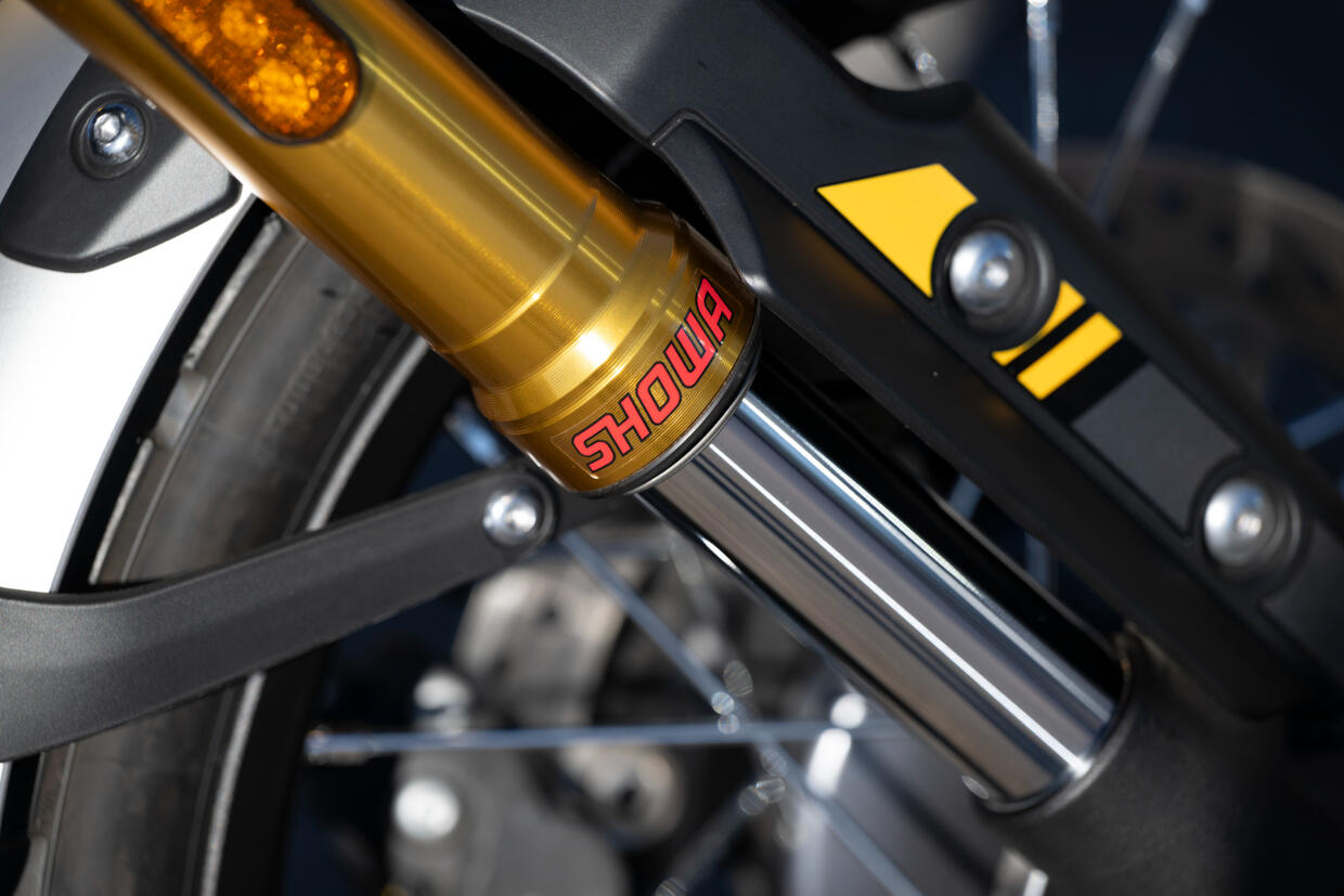 Per le sospensioni abbiamo una nuova forcella rovesciata Showa da 43 mm con 120 mm di escursione e due ammortizzatori Showa con serbatoio separato, regolabili nel precarico, anch'essi con 120 mm di escursione. È una scelta che offre a un buon equilibrio fra comfort, ed efficacia su strada e sterrati, così come i cerchi a raggi (più leggeri) da 19 pollici all'anteriore e 17 al posteriore, dotati di gomme Metzeler Tourance, ottime per un uso misto, asfalto (soprattuto) e off road.