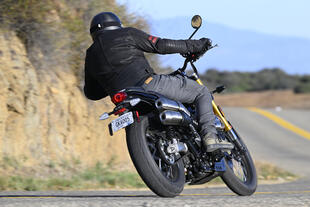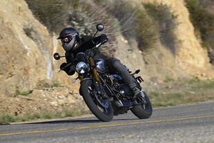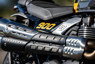 In off-road la Scrambler si comporta bene, a patto di non esagerare. L'escursione delle sospensioni è comunque stradale mentre le gomme Metzeler danno confidenza. Un po' meno la guida in piedi, resa scomoda dalla presenza del terminale alto che non consente di stringere bene la moto tra le gambe.