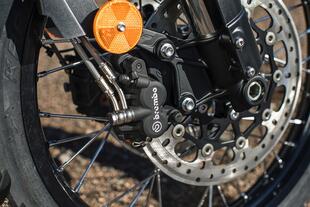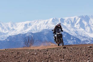 La moto non mette mai a disagio il pilota grazie all'eccellente equilibrio della ciclistica, con un accordo pressoché perfetto tra il telaio e le nuove sospensioni regolabili White Power a lunga escursione (220 mm per la forcella da 43 mm e 215 per il mono). Queste sospensioni digeriscono davvero di tutto e assicurano un'ottima luce a terra: solo in un paio di occasioni abbiamo raggiunto il fondo corsa, ma "atterrando" in un paio di dossi! Impeccabile anche il comportamento delle gomme Pirelli Scorpion Rally, che hanno assicurato costantemente grip e trazione a volontà sui fondi più disparati, dalle piste in terra rese infangate dalle copiose piogge dei giorni prima, alle piste rocciose e sabbiose incontrate nel deserto marocchino. Più che in fuoristrada, queste tassellate Pirelli ci hanno stupito per il comportamento su strada dove si sono rivelate sempre stabili e precise, anche ad andature elevate, nonostante i tasselli pronunciati.