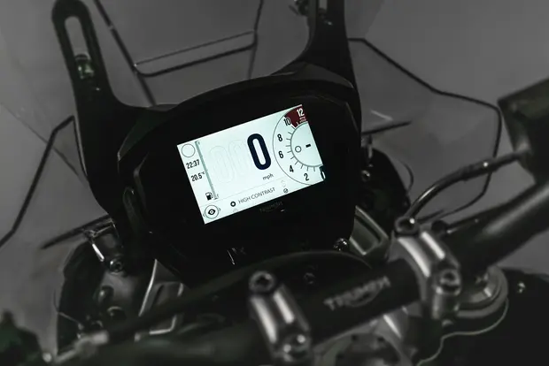 Nonostante la ruota anteriore da 21" e le sospensioni a lunga escursione, la Tiger 800 XCa sfoggia una stabilità e una precisione di guida notevoli anche sui percorsi più veloci, specie montando gomme più "stradali". Il comfort è quello di una vera "granturismo", grazie alla posizione di guida comoda e all'ampio parabrezza regolabile, con deflettori laterali, che ripara molto bene dall'aria. Facile e immediata anche la gestione dei dispositivi elettronici, grazie alla nuova interfaccia intuitiva e ai comandi dedicati.