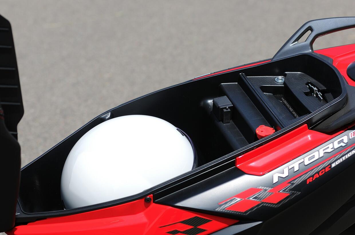 Nonostante le dimensioni compatte, la posizione di guida è corretta e c’è spazio a sufficienza anche per chi si aggira attorno ai 180 cm di statura. La sella è bassa e spaziosa, offre il giusto comfort e permette a tutti di toccare terra saldamente con entrambi i piedi. Comoda la pedana piatta, che permette di caricare uno zaino o altri oggetti lasciando ancora un po’ di spazio per i piedi. Il motore ha un’erogazione fluida, accelera discretamente e ha una buona ripresa ai medi regimi. Ma la dote migliore dell’Ntorq è l’agilità: in città svicola fra le auto senza problemi, fa inversione in un fazzoletto ed è sempre ben gestibile nelle manovre. La frenata non è molto aggressiva, ma comunque adeguata alle prestazioni: grazie al sistema combinato, tirando la leva di sinistra si ripartisce automaticamente l’azione su entrambe le ruote. Le sospensioni tarate sul rigido e le ruote piccole fanno però sentire tutte le buche.