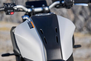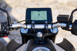 Tutto nuovo anche il cruscotto a colori da 5" che offre quattro diverse visualizzazioni tra cui scegliere. Oltre al tachimetro e al contagiri, la strumentazione comprende l'indicatore del livello e del consumo medio di carburante, la temperatura dell'aria e l'indicatore di marcia. Tutti i layout danno risalto al tachimetro, ma forniscono le informazioni in modi diversi per adattarsi ai gusti o allo stile di guida. Lo schermo TFT si può poi collegare allo smartphone del pilota tramite l'app MyRide.