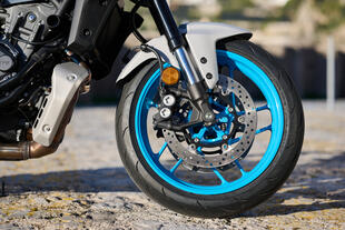La posizione di guida è ancora più sportiva, grazie al manubrio ribassato e alle pedane riposizionate. Nel complesso però, le variazioni non vanno a modificare in maniera esagerata la sensazione di piacevole controllo da sempre offerta dalla MT-07. La leggerezza, anche per la versione 2025 è un punto di forza: in più, grazie ai nuovi cerchi, l'agilità nello stretto è migliorata. Il motore CP2, grazie all'acceleratore "ride-by-wire" e alle modalità di guida, offre una risposta più precisa e personalizzabile. La spinta ai medi regimi rimane vigorosa, ma è possibile affinare l'erogazione in base alle proprie preferenze o alle condizioni stradali. Il controllo di trazione è ben tarato e permette di gestire l'esuberanza della moto, soprattutto su fondi scivolosi. Il cambio, sempre preciso e leggero, si adatta bene sia all'uso sportivo che a quello urbano. In città, la MT-07 si conferma agile e maneggevole, meno a suo agio in autostrada, ma non è certo una moto nata per i lunghi trasferimenti autostradali. Molto bene la frenata, precisa, sicura e con quel tocco di sportività che non guasta.