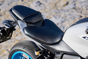 La MT-07 2025 offre anche una nuova posizione di guida più sportiva. Rispetto al modello precedente, ha un manubrio più ampio di 18 mm, più basso di 22 mm e arretrato di 9,3 mm, mentre le pedane sono più basse di 10 mm per aumentare lo spazio per le gambe.