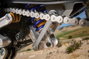Le sospensioni sono sempre KYB, ma con escursione maggiorata di 20 mm sia davanti sia dietro: adesso l’escursione alla ruota è di ben 230 mm per l’anteriore e di 220 mm per il posteriore. Forcella e mono sono completamente regolabili; è di serie anche l’ammortizzatore di sterzo Öhlins regolabile su 18 click e montato vicino alla piastra superiore. Due i colori disponibili: blu (con cerchi e foderi della forcella anodizzati) e nero.
