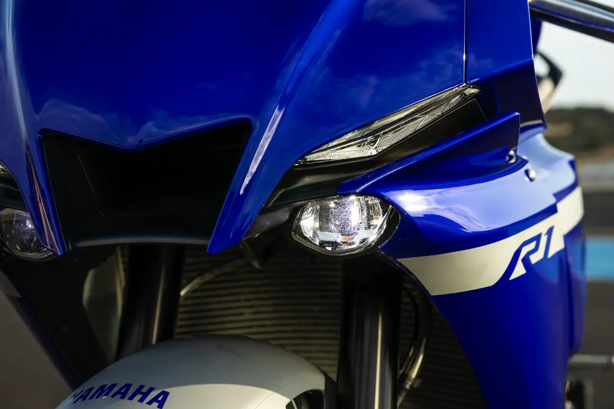 A livello estetico la nuova R1 sfoggia un frontale ispirato a quello della MotoGP di Valentino Rossi e una carena più "attillata"