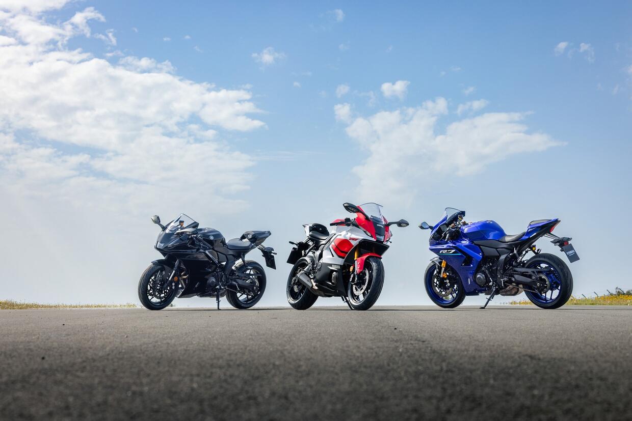 La nuova Yamaha R7 è già disponibile presso le concessionarie ufficiali, ad un prezzo che parte da 10.499 euro f.c. (700 euro in più rispetto alla passata generazione). La gamma colori è composta dal classico Icon Blue, dal Midnight Black e dallo spettacolare Anniversary White. Questa tinta dedicata al 70° aniversario del brand di Iwata si rifà fedelmente alla grafica della R7 originale del 1998, ma per averla bisogna aggiungere 300 euro al prezzo di listino. È inoltre già stata preparata un ricca linea accessori e tre pacchetti per risparmiare qualcosina: il Travel Pack, che comprende borsa serbatoio, griglia radiatore, plexiglass fumé e presa di ricarica UBS; lo Style Pack offre griglia del radiatore, grip serbatoio, plexiglass fumé, tamponi telaio e protezione corona di tramissione; infine, lo Sport Pack include paraleve (freno e frizione), portatarga alleggerito, tamponi telaio, cover sella monoposta e scarico Akrapovic.