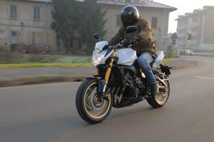 Dalla sorella maggiore FZ1 eredita telaio, cerchi, forcellone e cruscotto ma la FZ8 ha una sua identità: la posizione di guida è più comoda grazie a un disegno diverso del serbatoio, alle pedane posizionate più in basso e a un manubrio differente. Curata anche nei minimi particolari, la naked Yamaha è ancora più interessante nella nuova versione FZ8 ABS, un elemento sempre più richiesto dai motociclisti che usano la moto tutti i giorni. Quello della Yamaha tra l’altro funziona bene ed è perfettamente adeguato alle prestazioni di questa naked. Per il resto, la FZ8 rimane quella che conosciamo, una bella moto con un motore dall’erogazione piena a tutti i regimi e apprezzabile anche nell’uso “cittadino”, limitando l’uso del cambio. La FZ8 ABS costa 8.690 euro, cioè solo 500 euro più della versione normale: un aumento accettabile soprattutto adesso, perché oltre all’impianto antibloccaggio freni Yamaha, in questo primo periodo, offre terminale Akrapovic in carbonio, portatarga in alluminio e frecce piccole a LED senza sovrapprezzo.