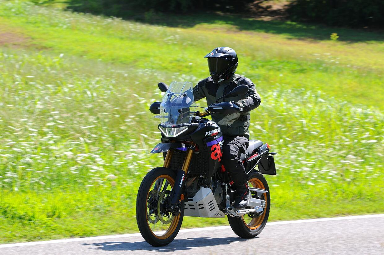 La sella a 91,3 cm da terra crea qualche problema nelle manovre da fermo se non si è ben sopra il metro e ottanta. Una volta in movimento la Tuareg Rally si rivela incredibilmente agile, grazie a una distribuzione dei pesi azzeccata. Fra le curve colpisce per precisione in inserimento e rigore: con il suo assetto rialzato e l'avantreno con ruota da 21", l'Aprilia non è reattiva come una naked ma offre tanta confidenza anche quando si alza il ritmo sfruttando l'indole sportiva del motore che dà il meglio soprattutto ai medi e agli alti regimi. Ottimo il cambio elettronico bidirezionale, che funziona egregiamente sia in inserimento sia in scalata. Grintosi ma ber modulabili i freni, mentre le sospensioni con setting standard sopportano efficacemente anche i comandi bruschi senza "affondare" eccessivamente.