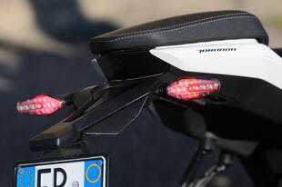 Benelli da ormai qualche anno è un’azienda di proprietà cinese (fa parte del colosso Keeway Group), ma ha scelto di mantenere il reparto di ricerca e sviluppo a Pesaro, sede storica del marchio del Leoncino. Qui infatti vengono progettate e disegnate le moto, tra cui la Tornado 550. Il design è moderno e all’anteriore il gruppo ottico offre due proiettori centrali sovrapposti, ai quali sono affiancati due “baffi” luminosi con funzione di luci diurne. Al posteriore invece stop e luci di posizione sono incorporati negli indicatori di direzione.