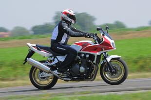 Stabile e precisa la CB non teme giunzioni o scie dei camion. Il cupolino non è ingombrante ma protegge bene dall’aria, permettendo lunghe tirate da casello a casello, anche in coppia. Il quattro cilindri non trasmette alcuna vibrazione ma consuma parecchio: per fortuna il grande serbatoio consente un’autonomia di oltre 270 km. Bene sella e posizione di guida, che non stancano nemmeno dopo tante ore di viaggio.