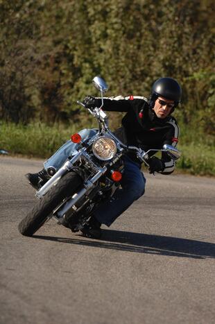 La posizione di guida è tipicamente da custom, con le pedane piuttosto avanzate e le braccia protese verso il largo manubrio. Il motore eroga i suoi circa 25 CV in maniera fluida e facile da controllare, ma si rivela anche piacevolmente brillante. Bene a punto anche cambio e frizione, preciso il primo, resistente agli strapazzi e morbida la seconda. Su strada bisogna tenere a mente che è una custom “turistica”: la luce a terra è scarsa e basta piegare anche pochissimo per strisciare a terra le pedane e il cavalletto. La forcella ha invece una taratura un po’ troppo morbida e affonda vistosamente in staccata.