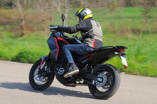 In autostrada la X-Cape può affrontare trasferte autostradali anche a medio-lungo raggio senza problemi. Stabile in velocità, trasmette poche vibrazioni e offre un discreto riparo aerodinamico. Non buono perché, per via delle forme enduristiche, si resta esposti alla pressione del vento. Anche su questa Morini il vano sottosella è pressoché inesistente, e il tris di valigie in alluminio è optional. Per quanto riguarda i consumi, dai nostri rilevamenti risultano percorrenze intorno ai 20 km/l a 130 km/h. Si avverte la mancanza del cruise control, ormai d’obbligo per questo genere di moto.