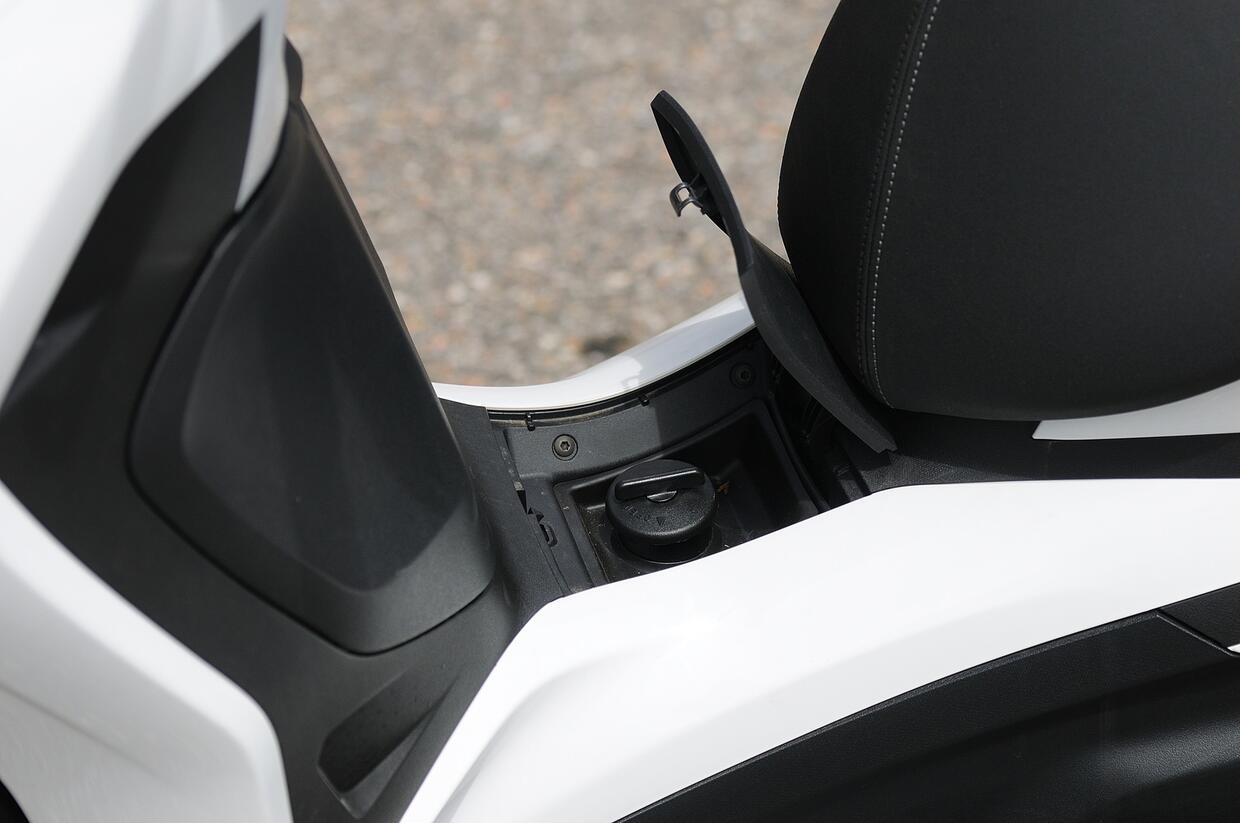 Per quel che riguarda la posizione di guida, la triangolazione tra sella, manubrio e pedane è corretta. La sella è bassa, ma lo spazio per i piedi limitato. Il passeggero viaggia comodo, grazie a una porzione di sella ampia e ben sagomata, pedane alla giusta altezza e distanza dal pilota. Inoltre, c'è un solido maniglione posteriore.