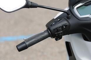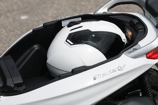 I comandi al manubrio sono moderni e poco sporgenti, ma si utilizzano bene anche con i guanti invernali. Sulla sinistra si possono scorrere i dati disponibili sul display, sulla destra ci sono i comandi del sistema di connessione Piaggio Mia. Il display LCD da 5,5” offre numerose informazioni, si legge bene anche in pieno giorno ma è rimasto in bianco e nero, come nella versione precedente. La connessione con il cellulare è optional.