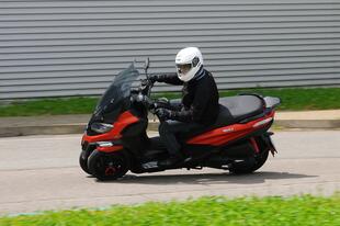 In città le dimensioni abbondanti penalizzano l’MP3, che richiede un po’ di attenzione per muoversi negli spazi stretti. Le sospensioni fanno un buon lavoro, incassando le buche senza problemi. Comodo il sistema di blocco delle sospensioni, che offre una sensazione di solidità.