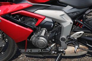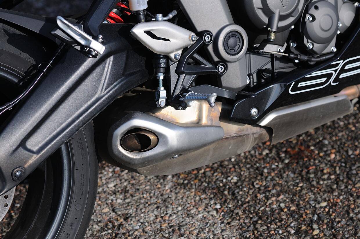 Il tre cilindri inglese è brillante: è quello della naked Trident, ma modificato nell’alimentazione, nell’aspirazione, nello scarico e nei componenti interni: il risultato è un aumento di potenza di ben 13 CV (da 81 a 94 CV rilevati alla ruota) e una coppia di oltre 65 Nm fra 3.000 e 8.300 giri. La dotazione elettronica include tre riding mode (Sport, Road e Rain) e il controllo di trazione. Solo optional il cambio quickshift.